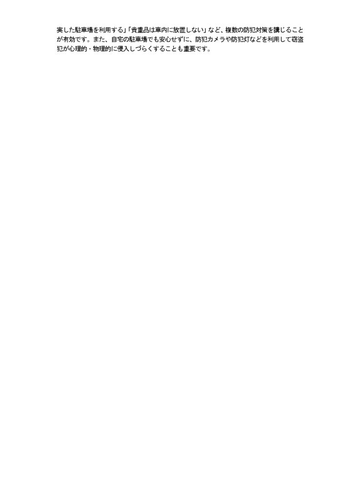 特定の車種や駐車環境を狙った盗難手口も報告されており、引き続き十分な注意が必要です。