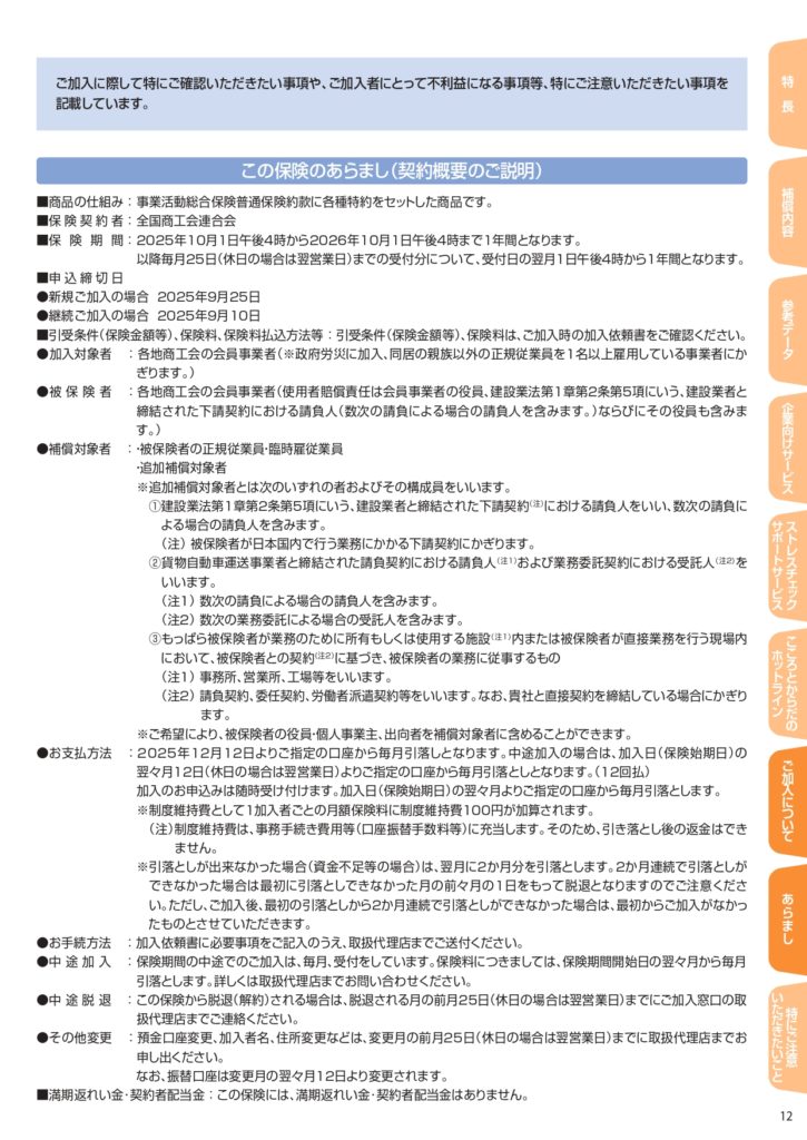 業務災害補償プラン(全国中小企業団体中央会)パンフレット