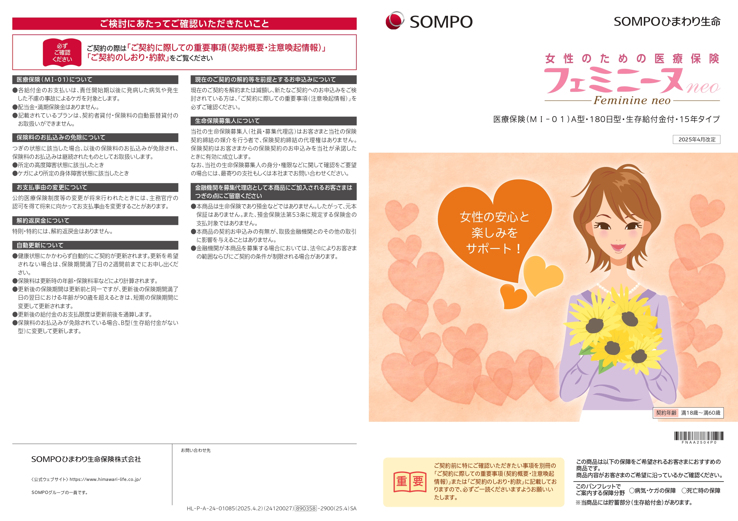 女性のための健康をサポートする医療保険 健康のお守りパンフレット