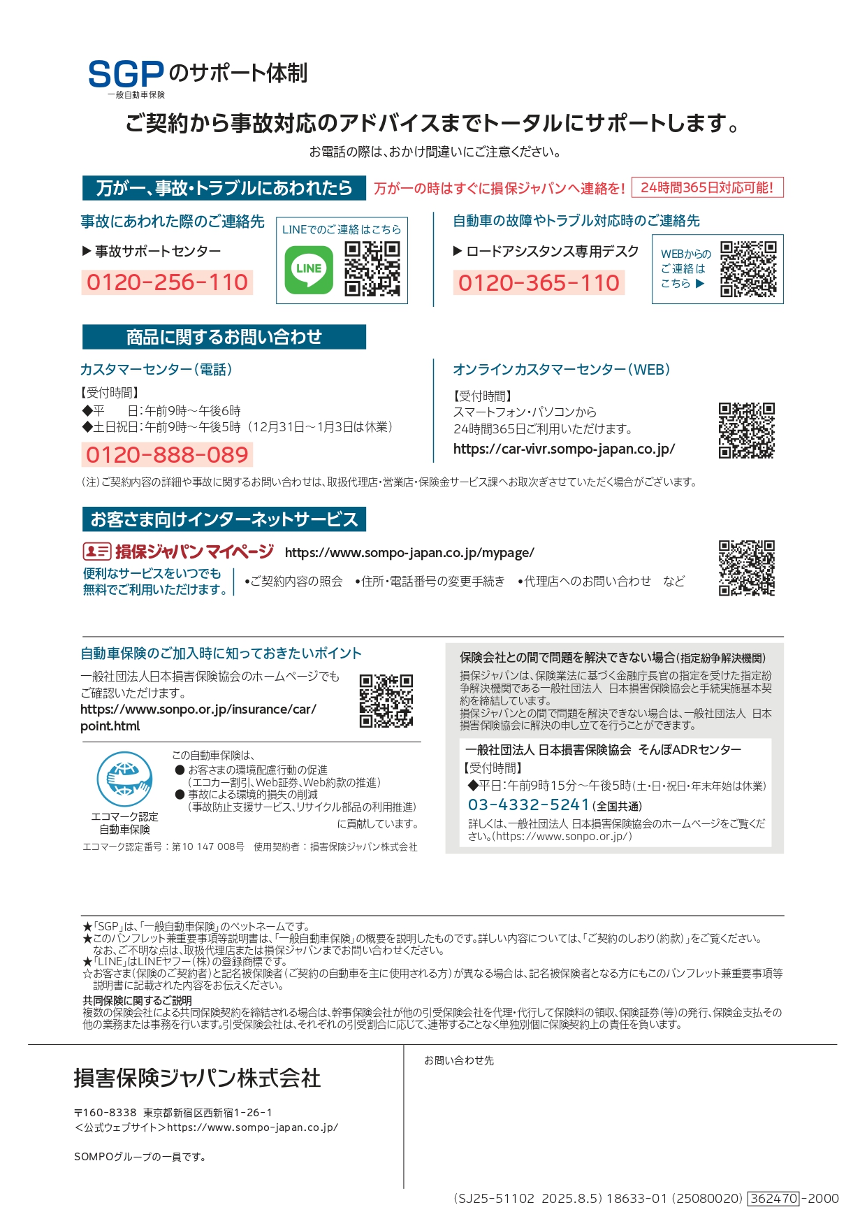 SGP一般自動車保険パンフレット